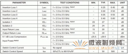 有一個比較奇怪的現(xiàn)象時我們很少看到在Datasheet中提到切換速度這樣的參數(shù)。在絕大多數(shù)設計中,幾乎無一例外的使用了NEC公司的uPG2179作為切換芯片(Switch),其典型參數(shù)如圖5-2 所示。