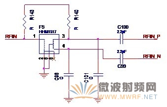 其實大家也一定想到了,收發(fā)器接收信號和收發(fā)器發(fā)送信號差不多就是互為逆過程,因此電路的結(jié)構(gòu)也差不多是相反的。沒錯,看了下面的實際電路圖就知道了。 先來介紹使用平衡器的方案。在某實際案例中,采用了如圖2-8所示的平衡器電路。單端信號RF_IN經(jīng)過平衡器F5后得到差分的射頻信號RFIN_P和RFIN_N。