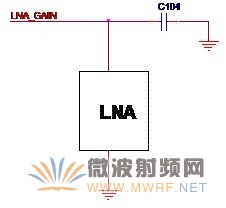 我為什么要把電源與增益控制放在同一節(jié)呢?因為低噪聲放大器的增益是依靠改變供電電壓來實現(xiàn)的,這樣就很容易理解了。學過模擬電路的都會知道,三極管放大電路的放大倍數(shù)和供電電壓有密切關系,對于芯片說也同樣如此。圖4-4給出了常見的增益控制的電路形式。圖中的LNA_GAIN既是來自無線收發(fā)器(Radio Transceiver)增益控制信號,又是低噪聲放大器的供電電源,C104是濾波電容,顯而易見,低噪聲放大器的增益直接與LNA_GAIN的電壓有關。